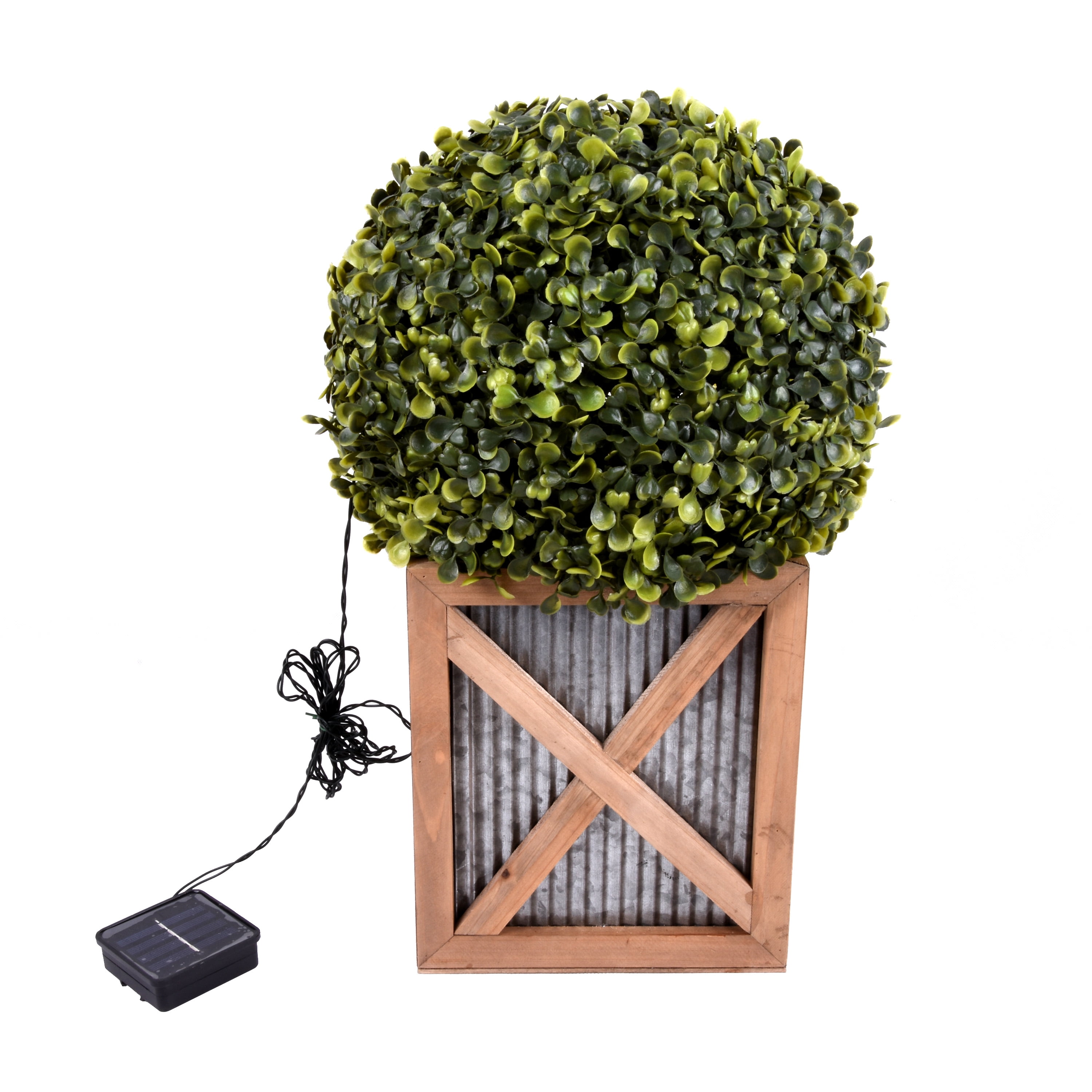 Better Homes Gardens 17 Inch Solar Powered Boxwood Topiary Plant Walmart Com